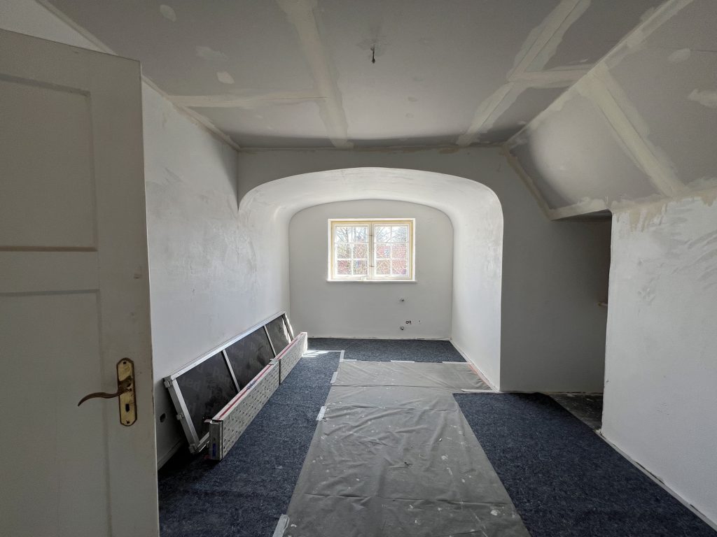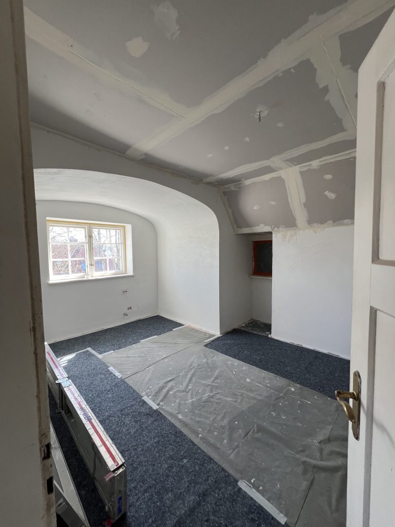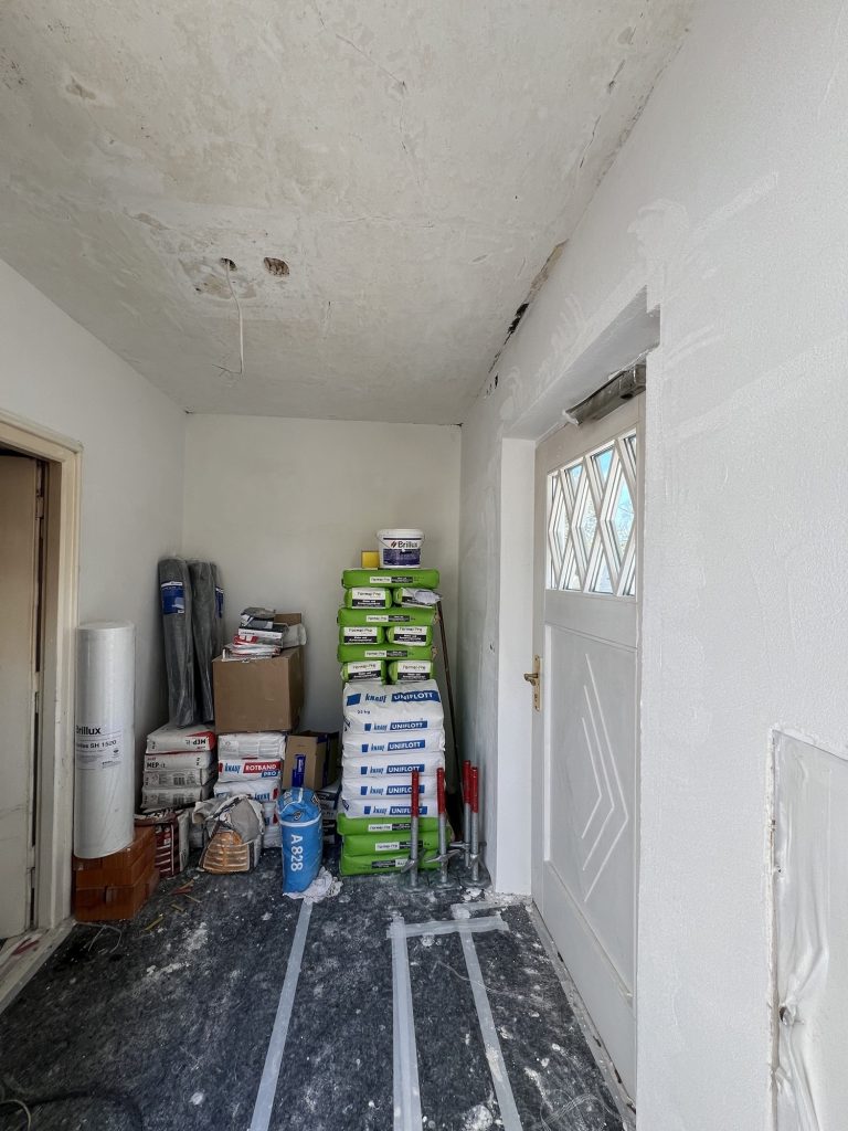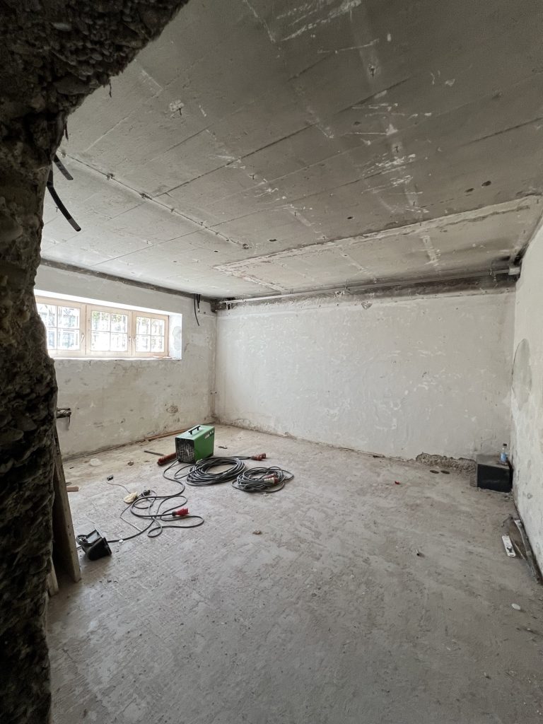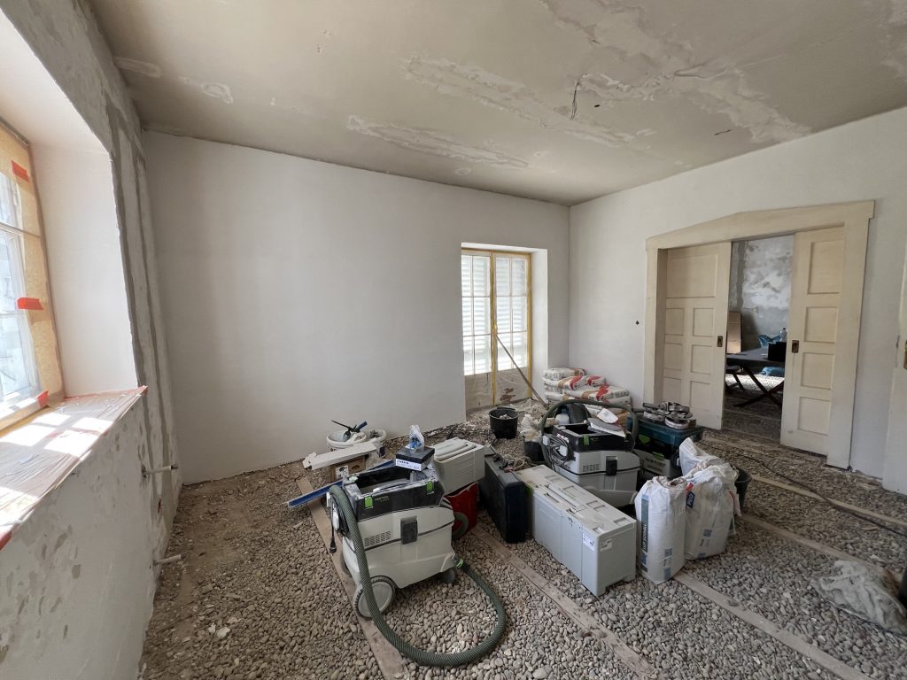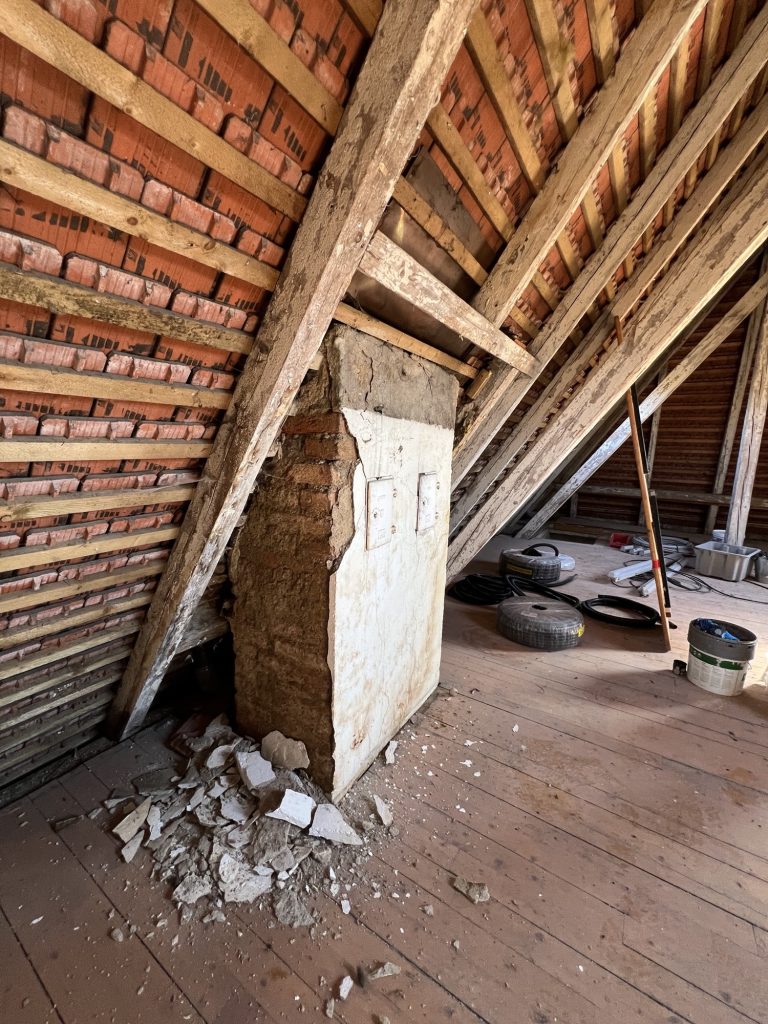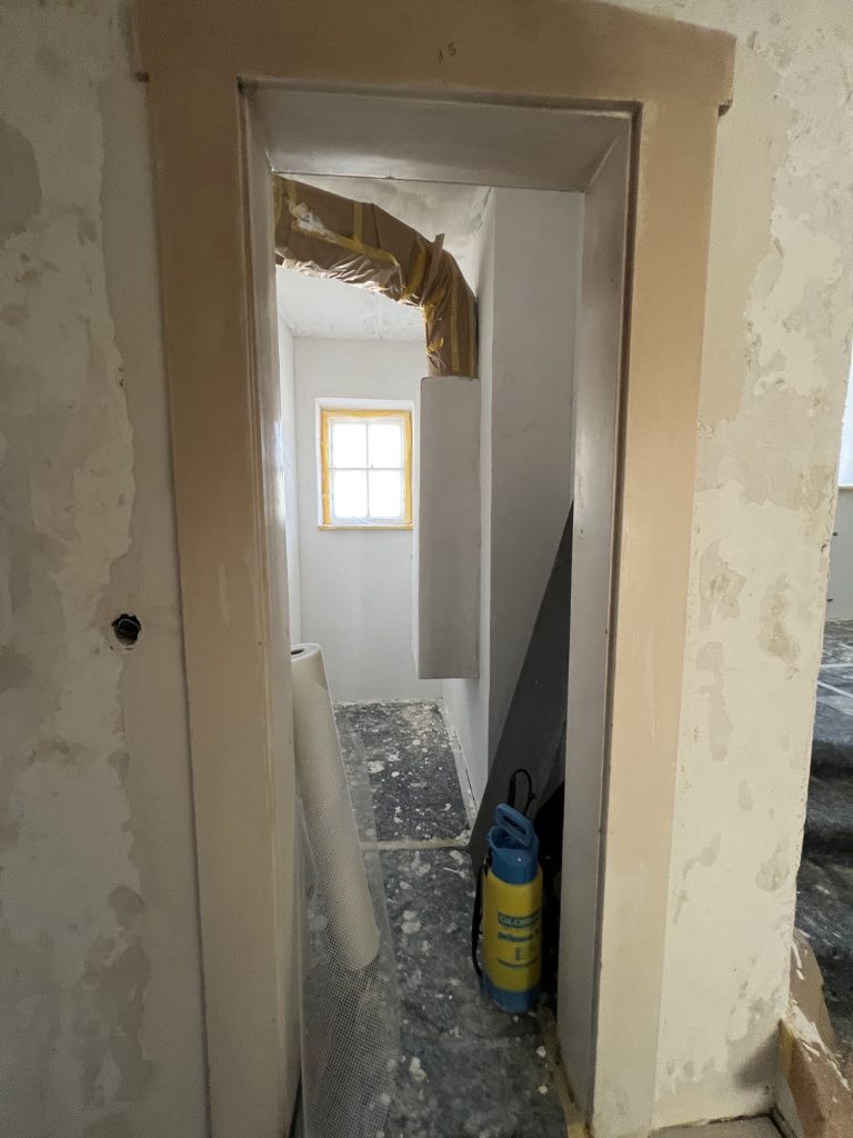 – MBS – finale chemische und manuelle Reinigungen sämtlicher Rußstellen an Wänden, Decken, Türrahmen im 1. OG, EG und Keller