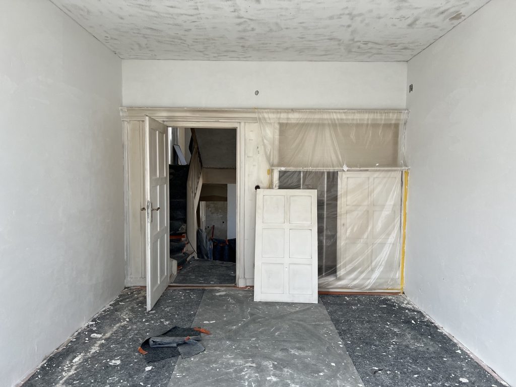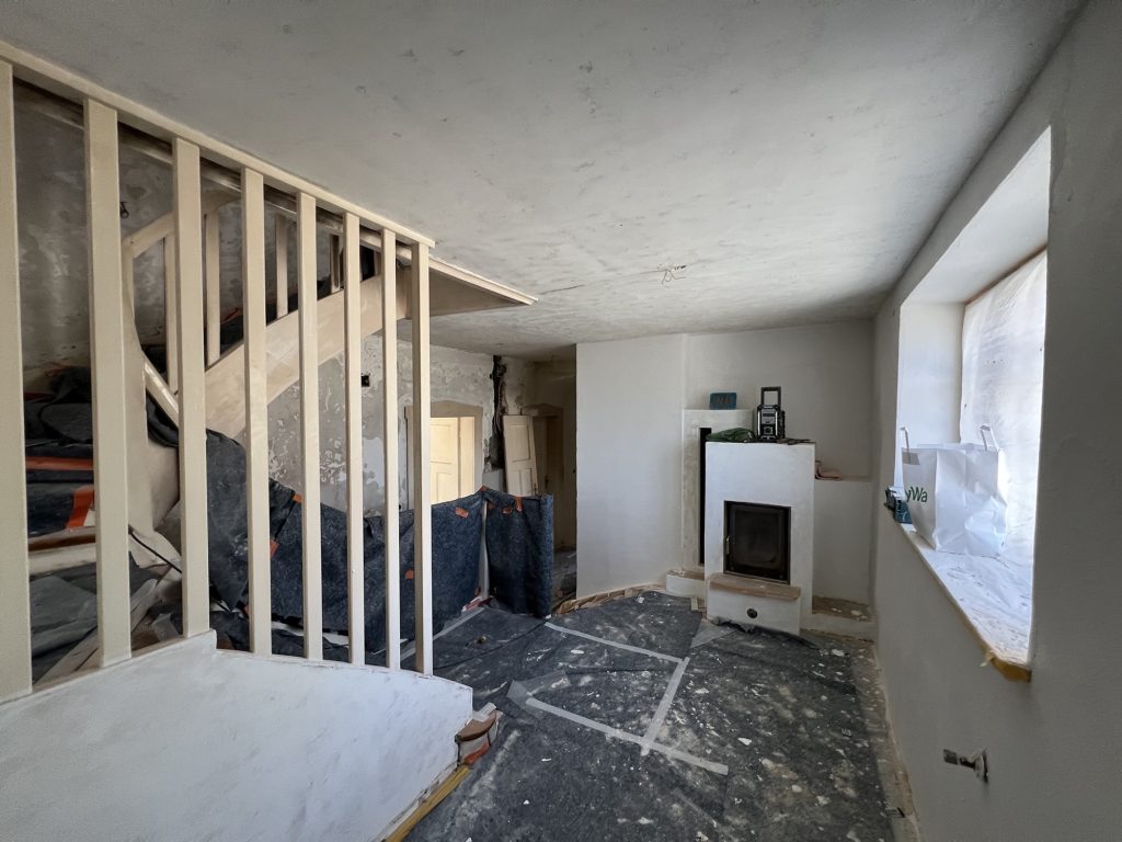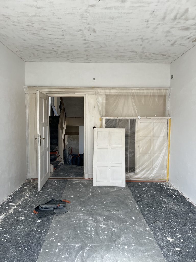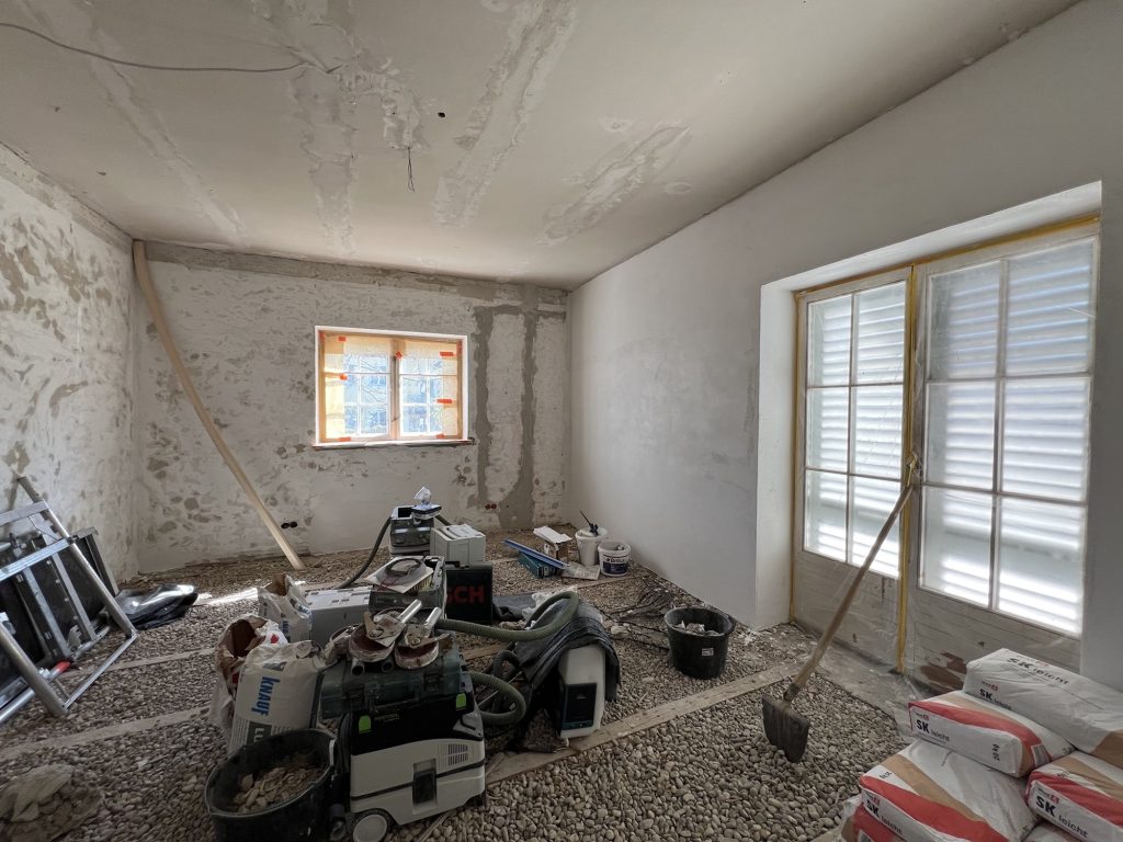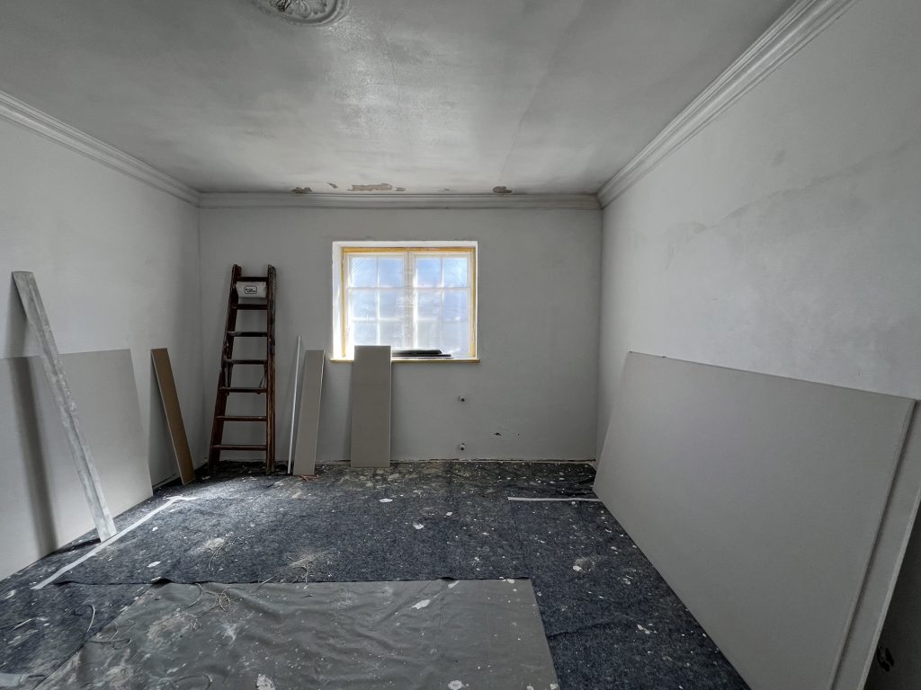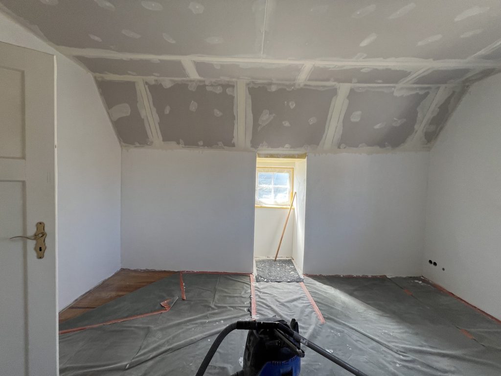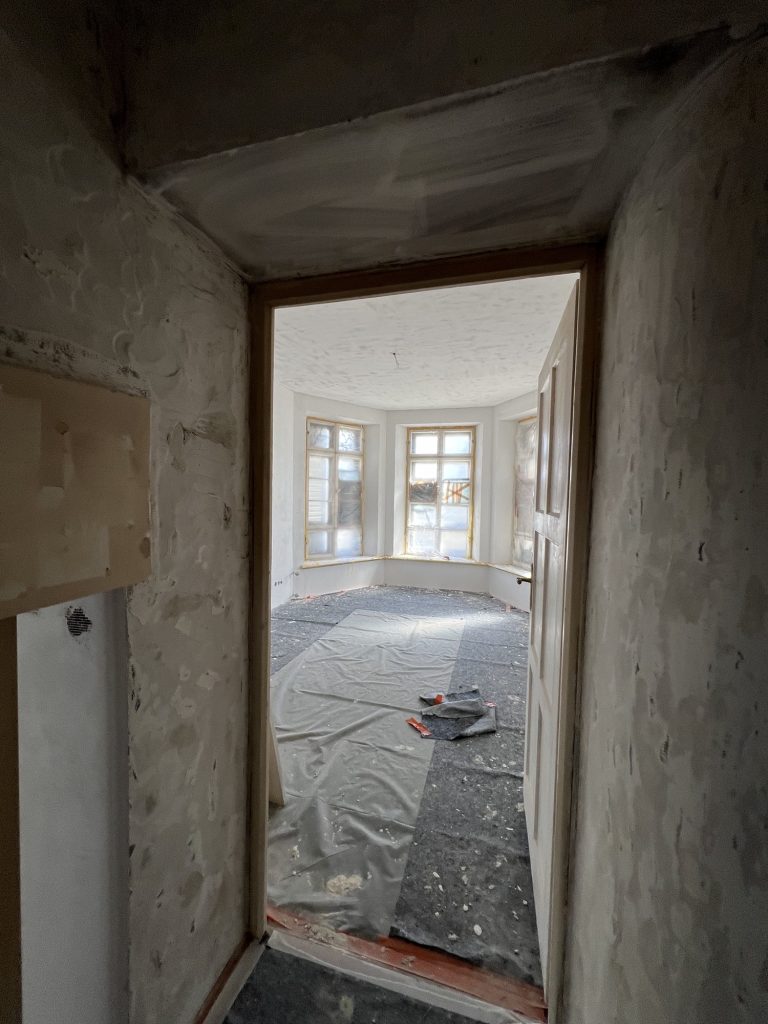 – MBS – finale chemische und manuelle Reinigungen sämtlicher Rußstellen an Wänden, Decken, Türrahmen im 1. OG, EG und Keller