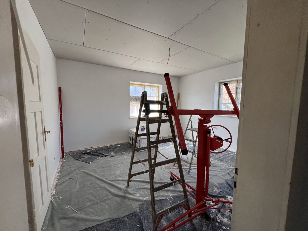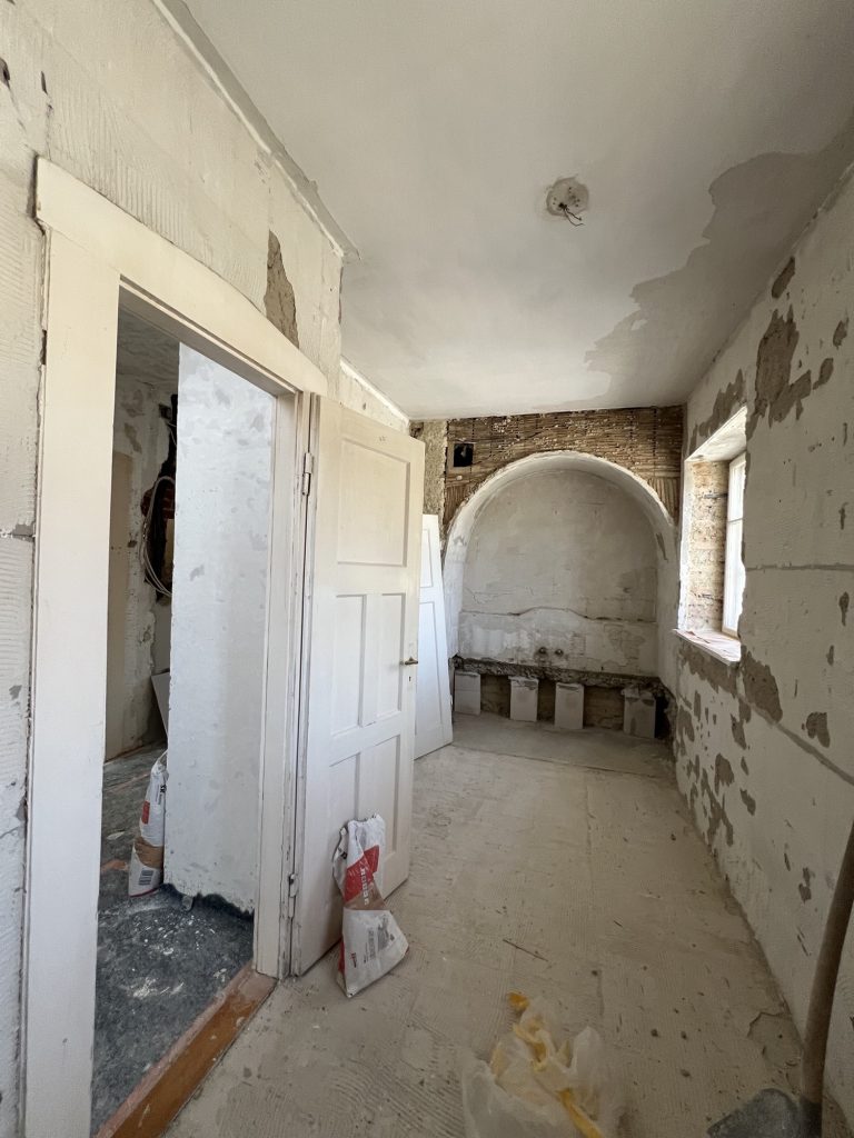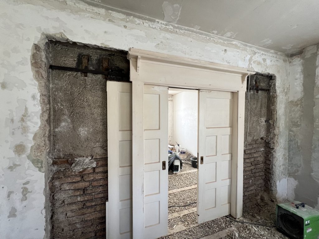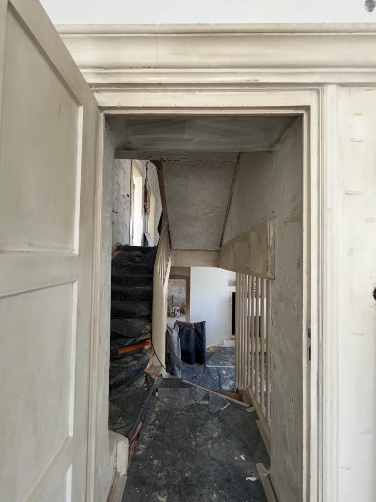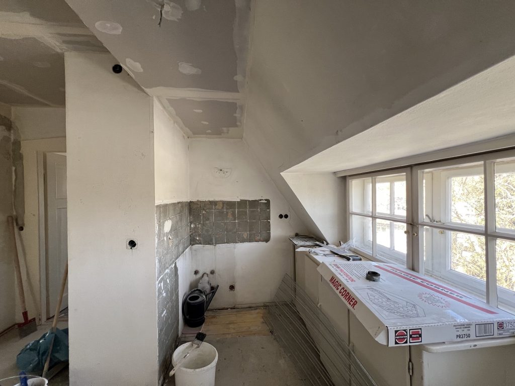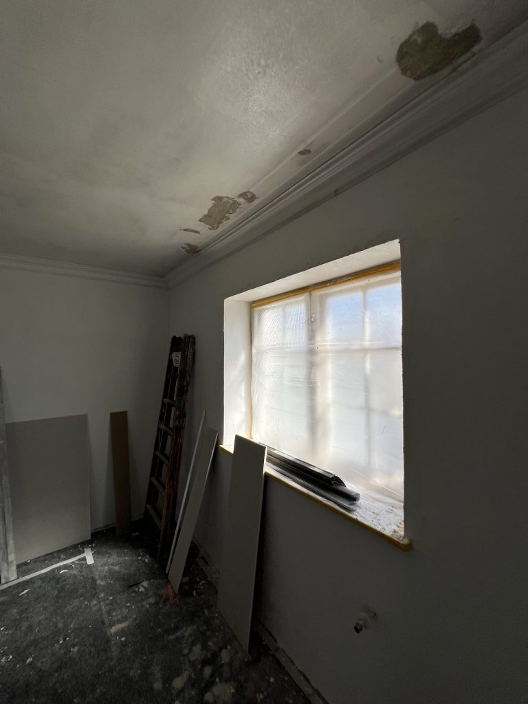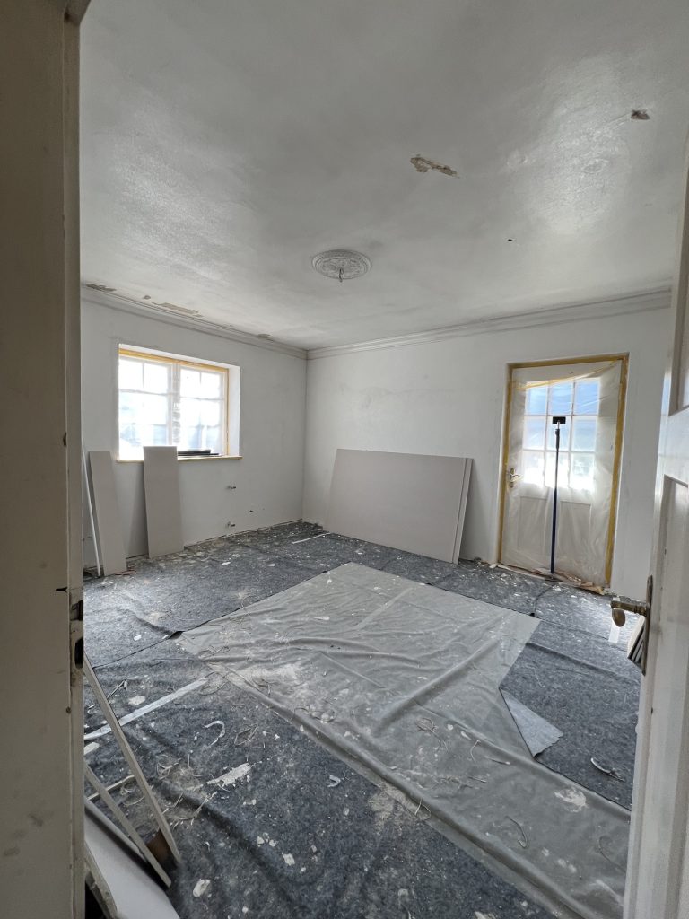 – MBS – finale chemische und manuelle Reinigungen sämtlicher Rußstellen an Wänden, Decken, Türrahmen im 1. OG, EG und Keller